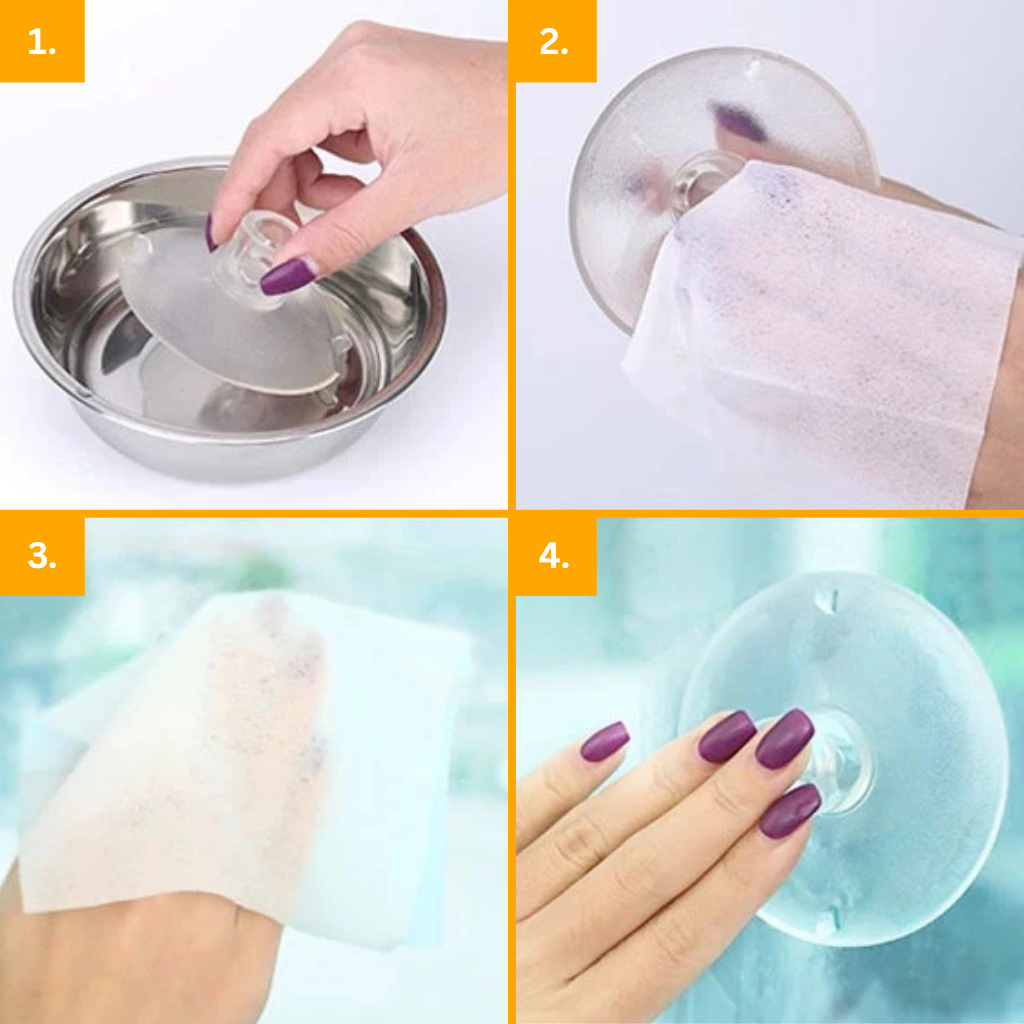 The four suction cups stick securely to any smooth surfaceno tools required.