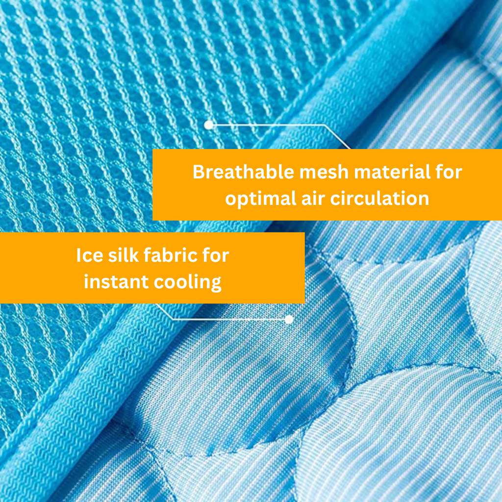 The specially developed ice silk fabric provides an immediate cooling sensation, while the breathable mesh backing ensures optimal air circulation.