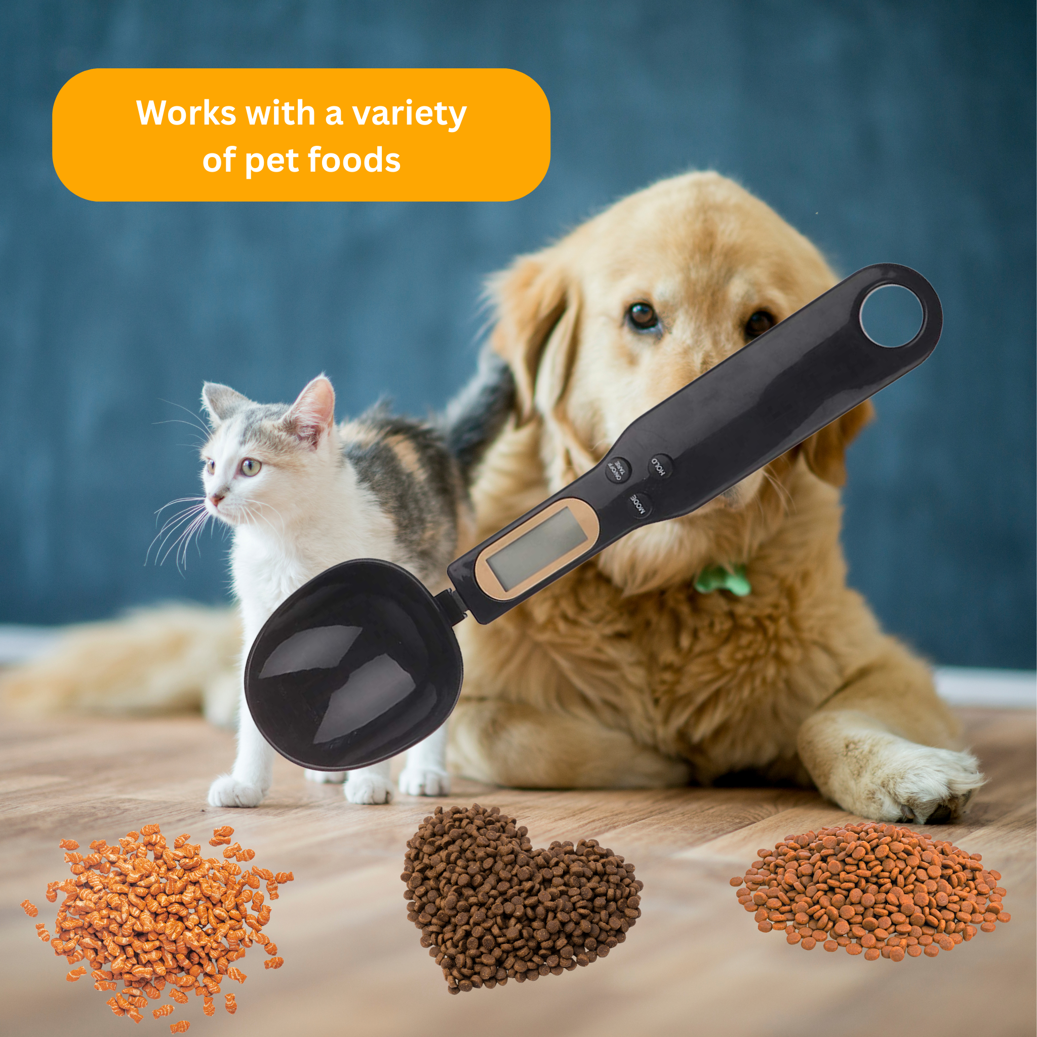 This digital spoon scale was developed for your pet's nutritional needs. Perfect for weighing daily food, special diets, powdered medications, liquid vitamins, or treats.