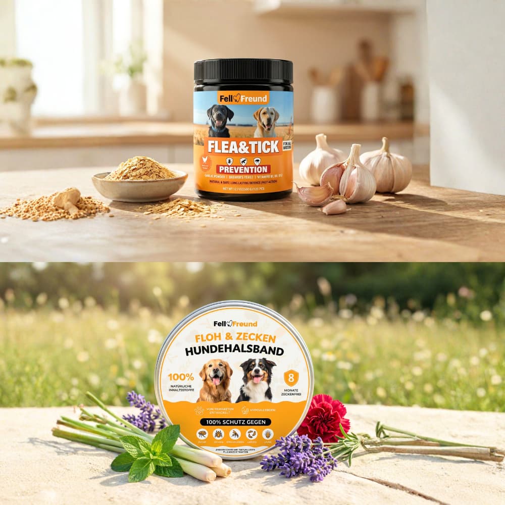 Da Zecken und Flöhe das Wohlbefinden stark beeinträchtigen können, setzt das FellFreund Floh- & Zeckenschutz Duo auf ein durchdachtes Schutzkonzept, das von innen und außen wirkt.