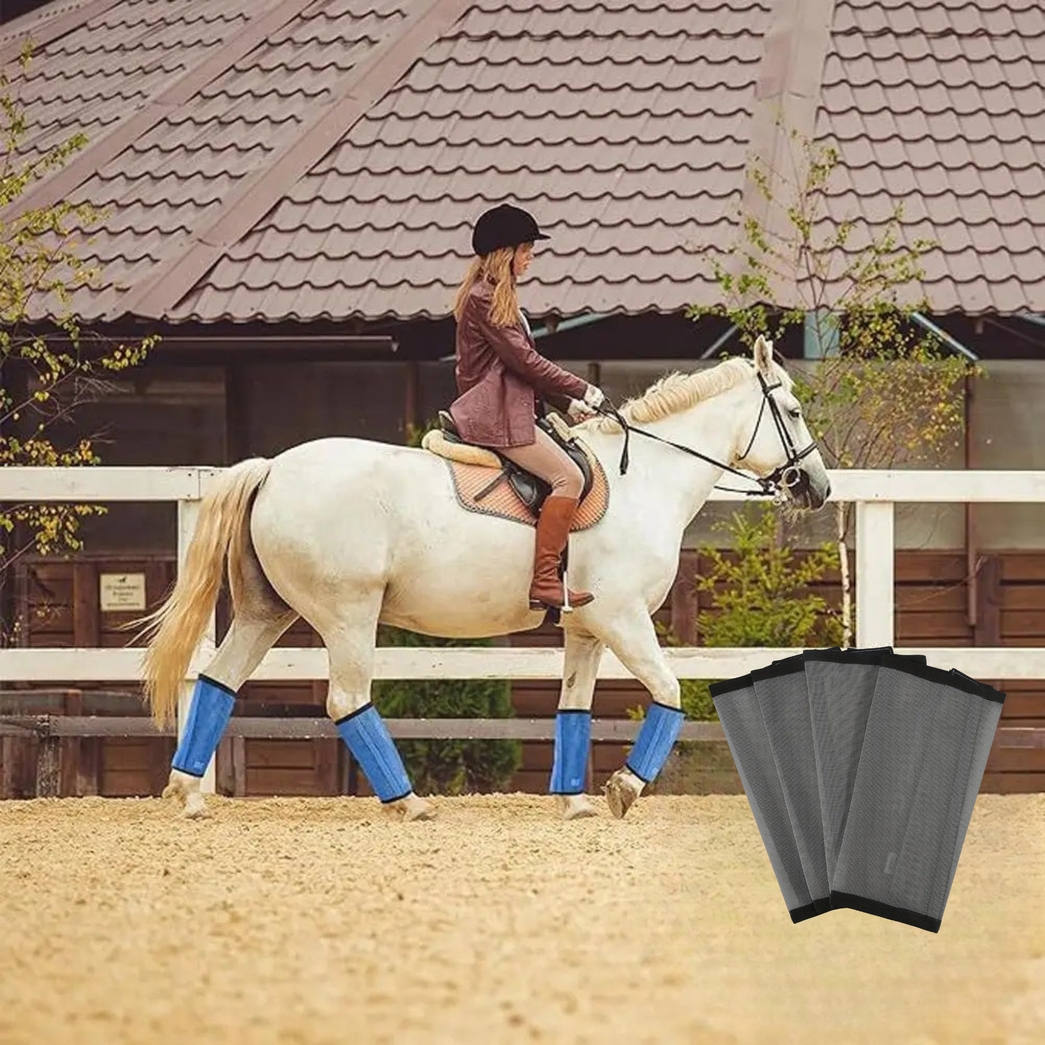 FlyGuard wird als komplettes Set mit vier Beinwickeln geliefert, erhältlich in modischen Farben, die zur Ausrüstung deines Pferdes passen. Egal ob für den täglichen Einsatz, als Ersatz oder für unterwegs – sie vereinen Funktion mit einem ansprechenden Look.