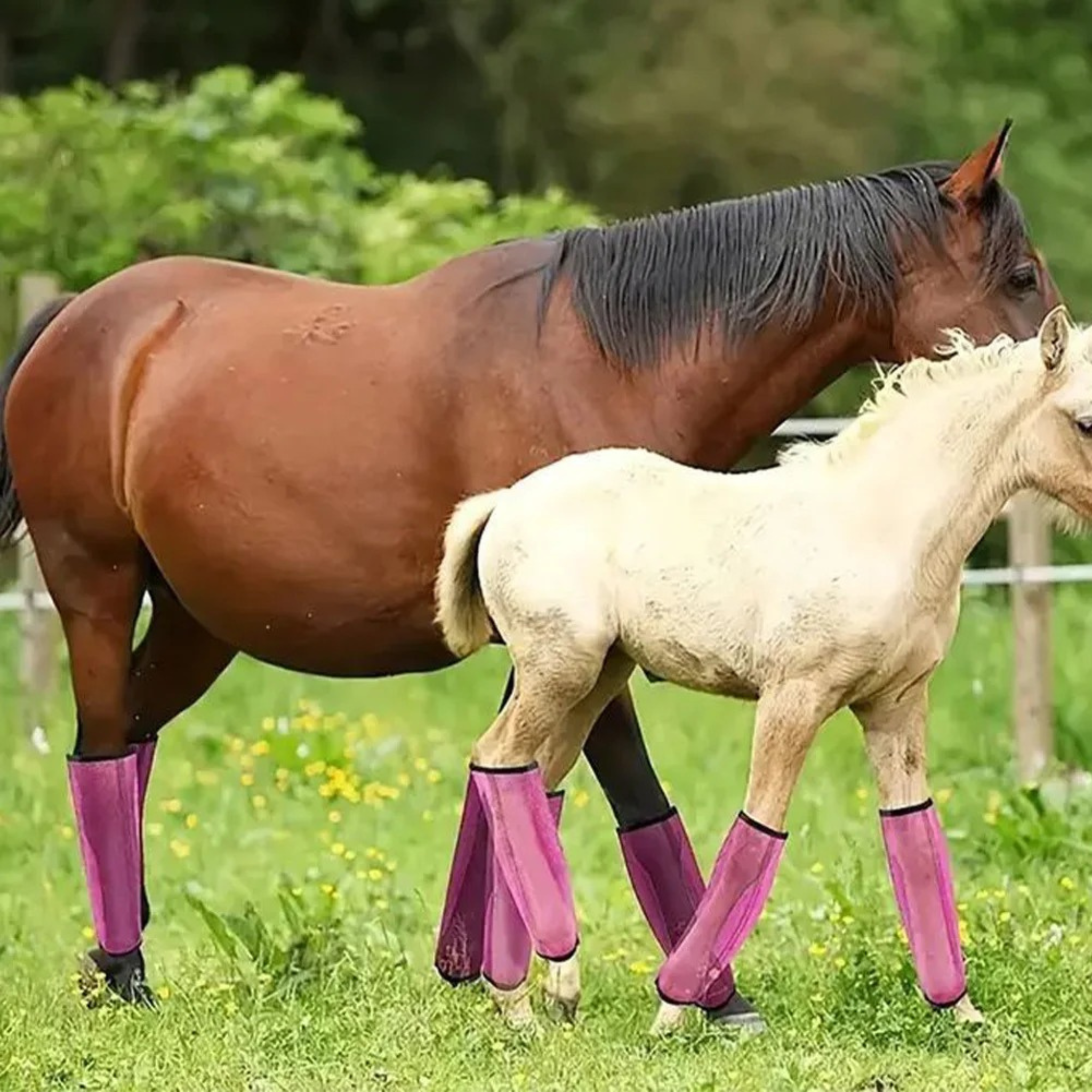 Ja! Sie sind aus atmungsaktivem Mesh und hautfreundlichen Materialien gefertigt, sodass dein Pferd sie über längere Zeiträume bequem tragen kann – ohne Überhitzung oder Hautreizungen.