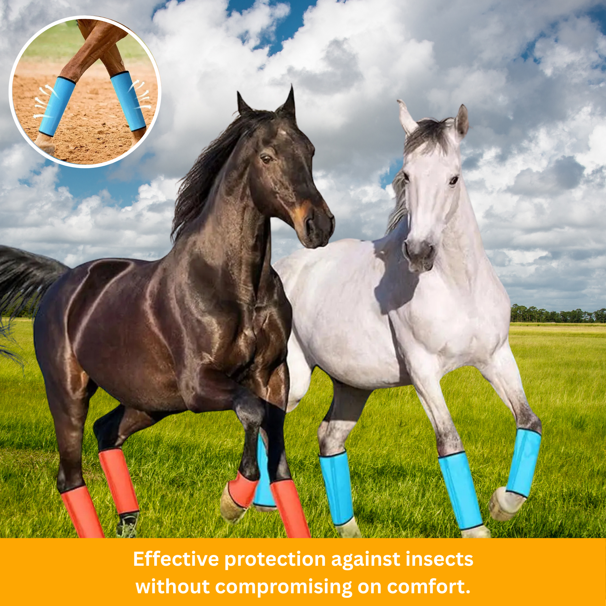 FlyGuard fly boots shield your horse from mosquitoes, flies, and biting insects—reducing irritation, preventing hoof abrasions, joint inflammation, and muscle fatigue for greater comfort and protection.
