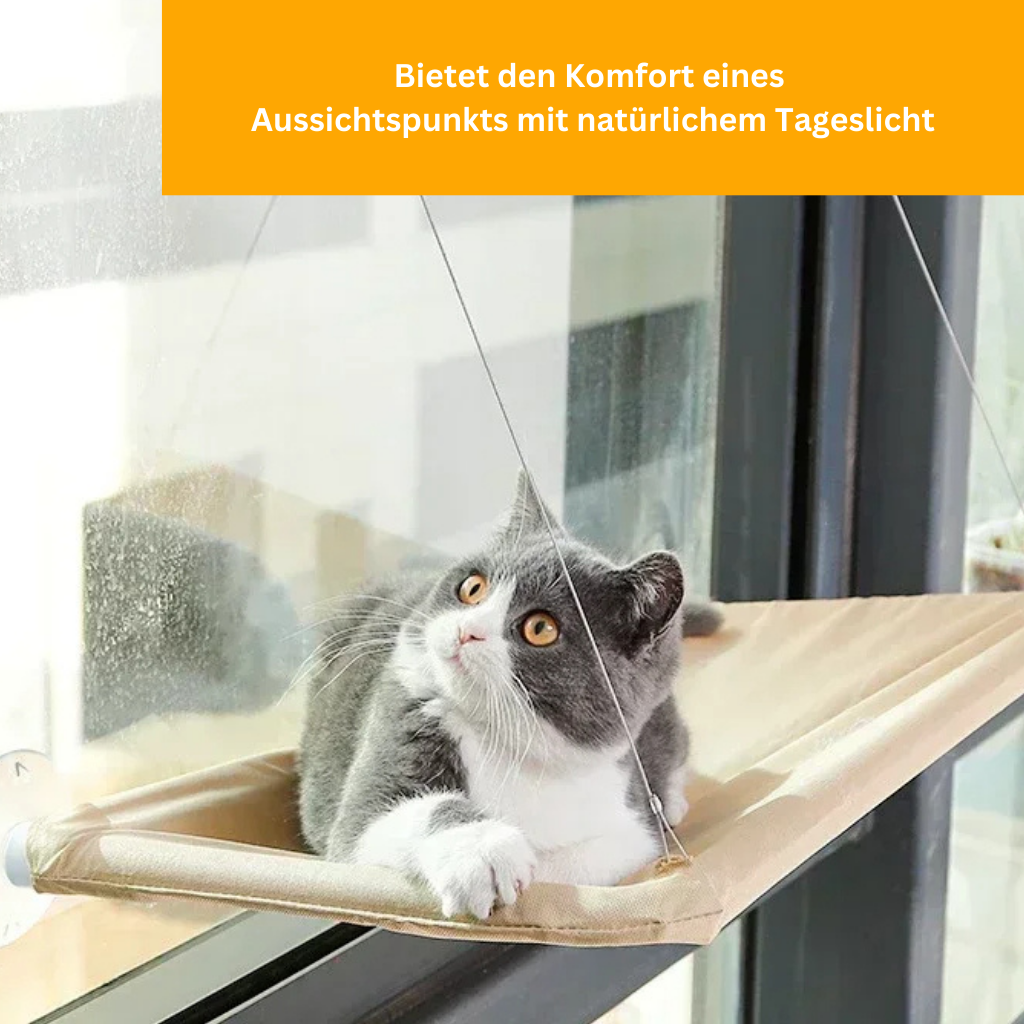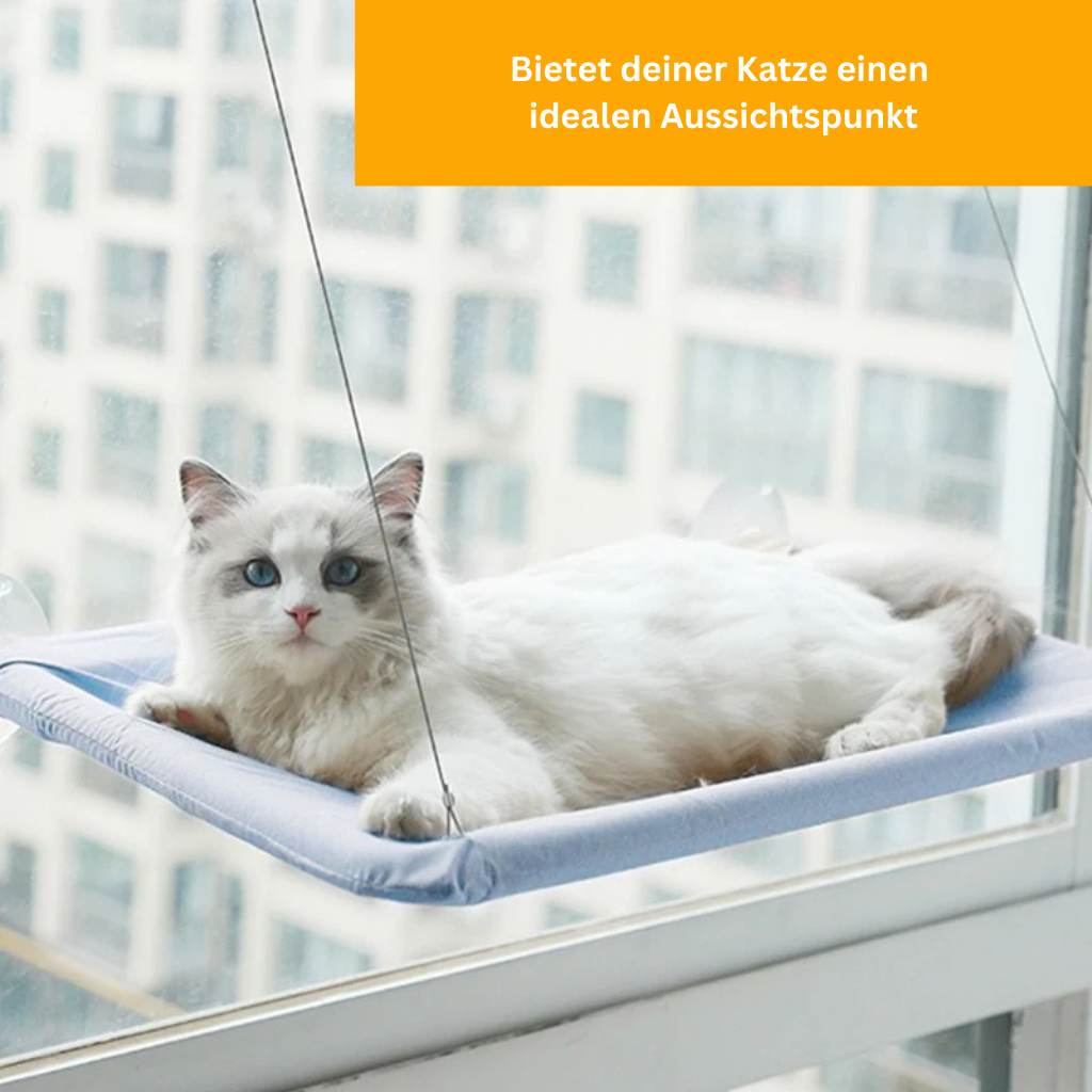 Die Hängematte wird direkt am Fenster befestigt und bietet deinem Liebling einen idealen Aussichtspunkt.