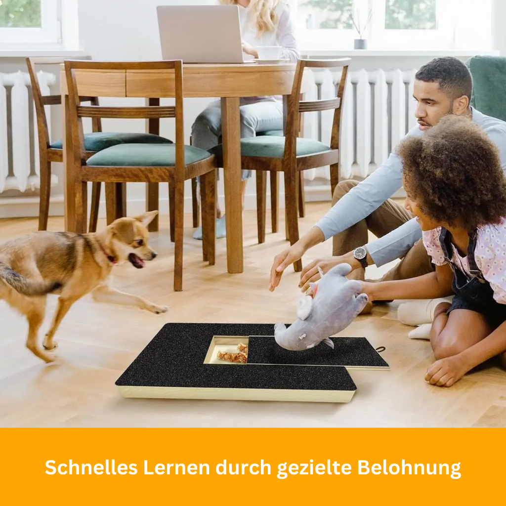 Um das Kratzbrett optimal zu nutzen, platziere es an einem ruhigen Ort, den dein Hund gerne besucht. Zeige ihm zunächst das Kratzbrett und lenke seine Aufmerksamkeit auf die integrierte Snackbox. Öffne die Schublade, zeige ihm den Snack und schließe sie wieder. Wiederhole dies mehrmals, um ihn dazu zu ermutigen, die Schublade mit seinen Pfoten zu öffnen. Sobald er das tut, wird er den Snack finden und belohnt werden.