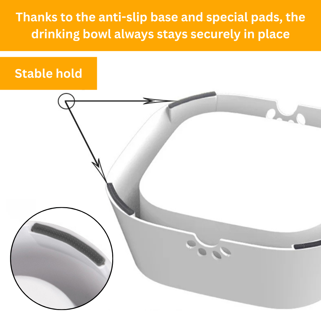 Equipped with an anti-slip base and special pads for added grip, the bowl stays securely in place wherever your pet drinks.