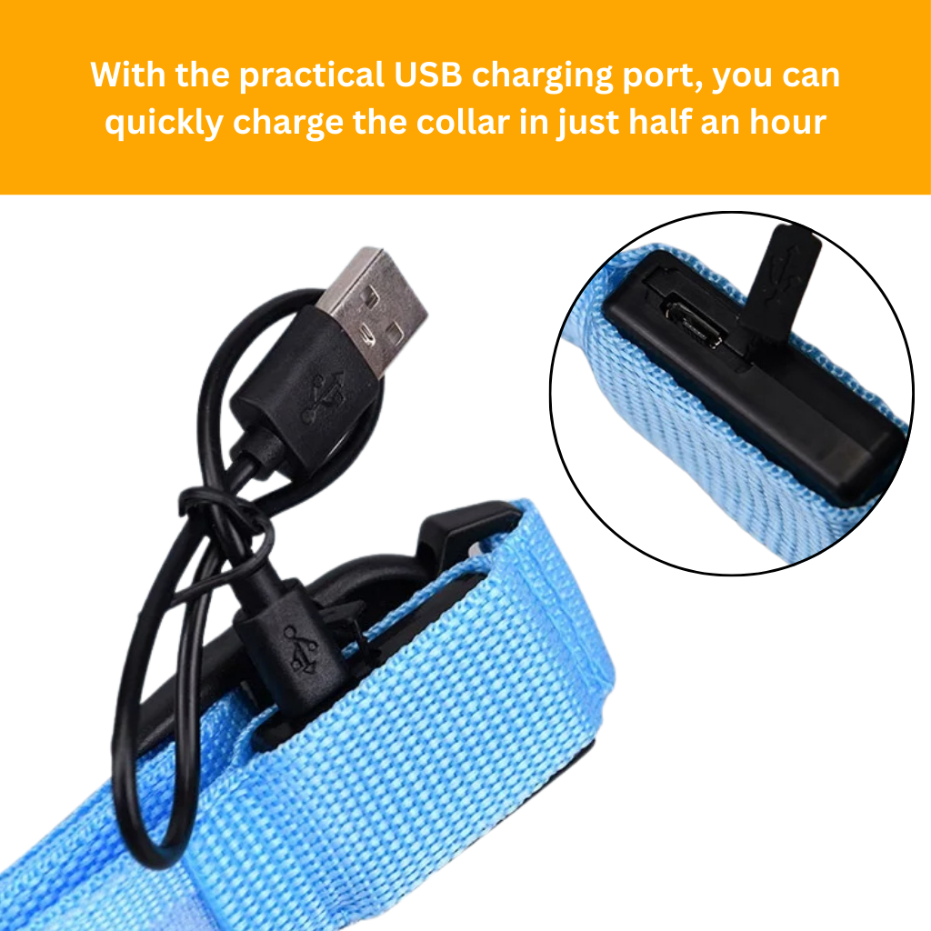 Thanks to the convenient USB charging port, the LED light-up collar is fully charged in just 30 minutes. You'll be ready for your next walk in no time.