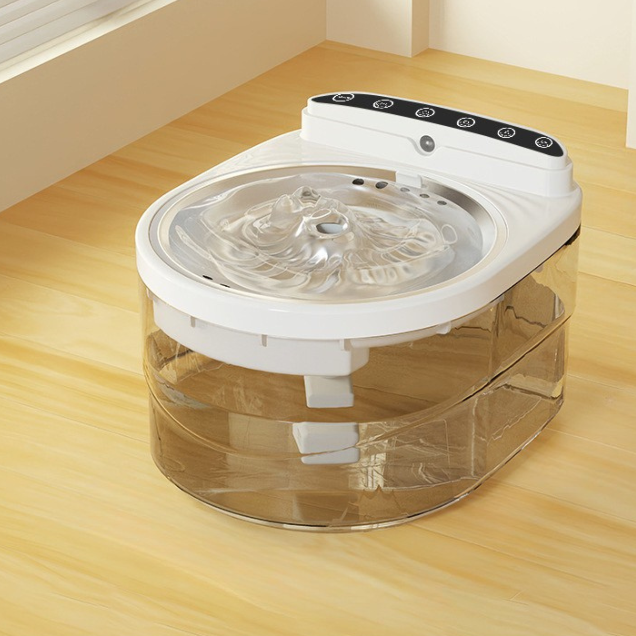Das kompakte Design (22,5 × 19 × 15 cm) passt in jedes Zuhause und macht den Brunnen zur perfekten Trinklösung für jede Umgebung.