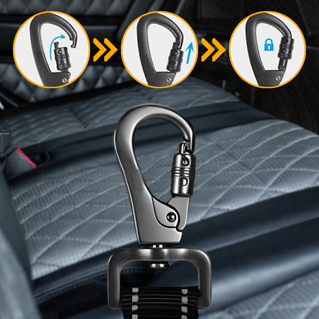 Der 360°-drehbare Karabiner ermöglicht eine einfache Anpassung, und die doppelte Sicherheitsverriegelung sorgt für festen Halt.