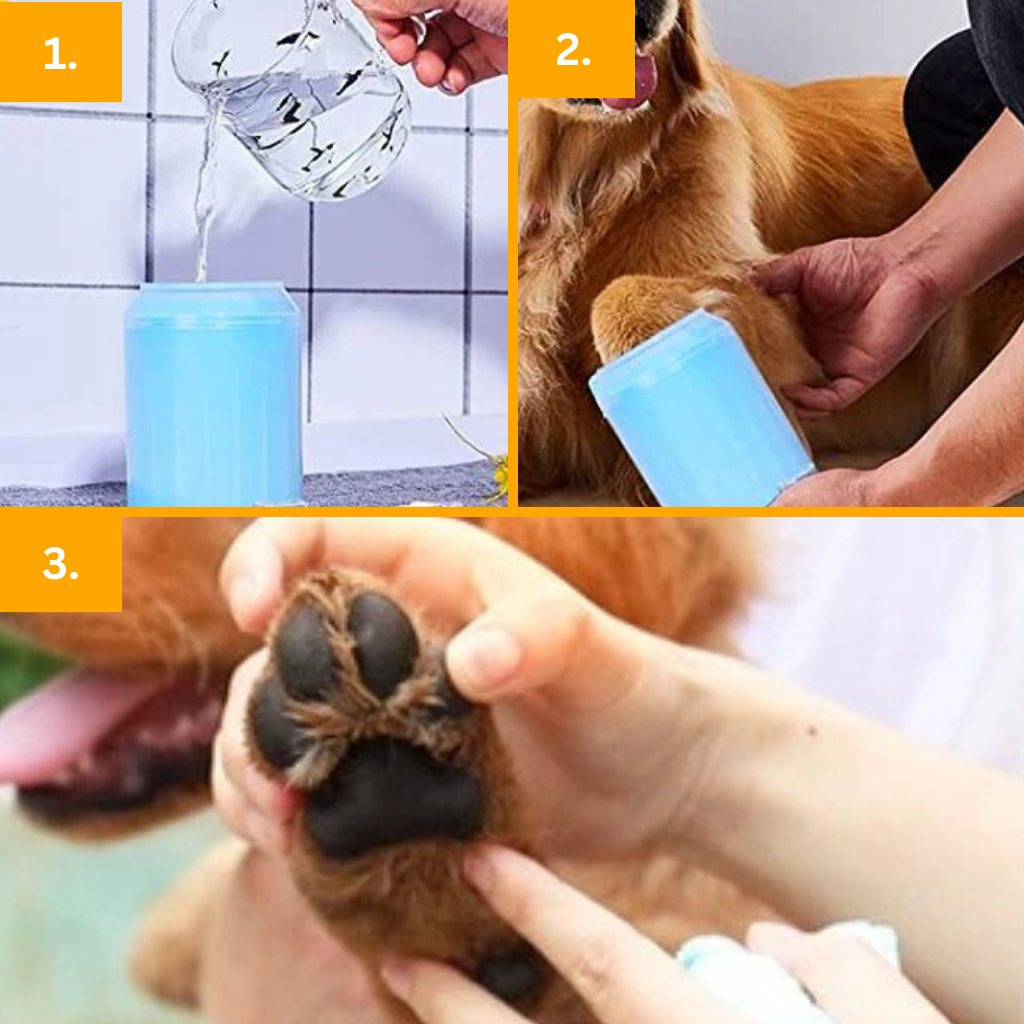 Der Pfotenreiniger ist ganz einfach zu bedienen. Fülle den Behälter mit warmem Wasser, tauche die Pfoten deines Hundes ein und bewege sie auf und ab. Die weichen Borsten entfernen sanft den Schmutz. Danach einfach die Pfoten abtrocknen – fertig!