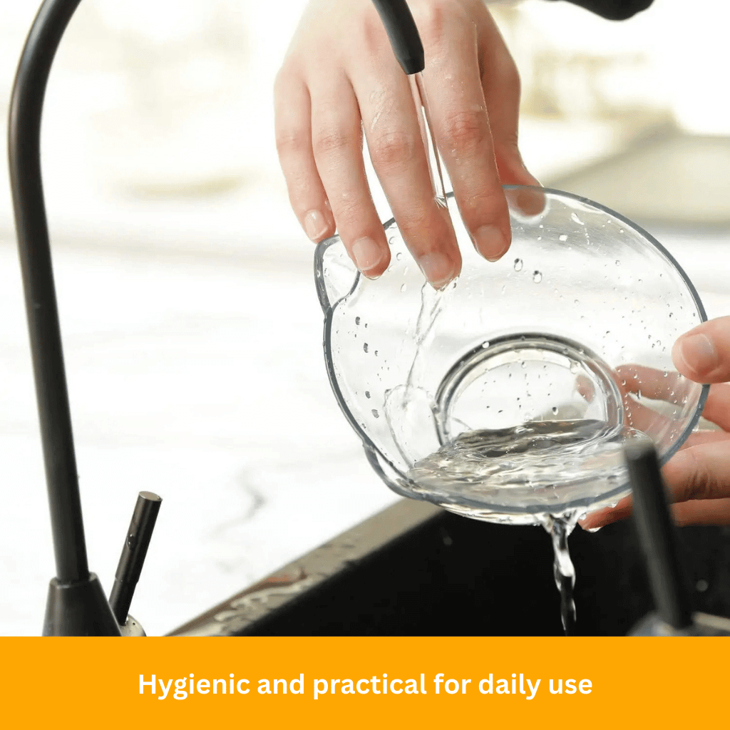 The Slow Feeder impresses with its elegant white and transparent design that fits seamlessly into any setting.