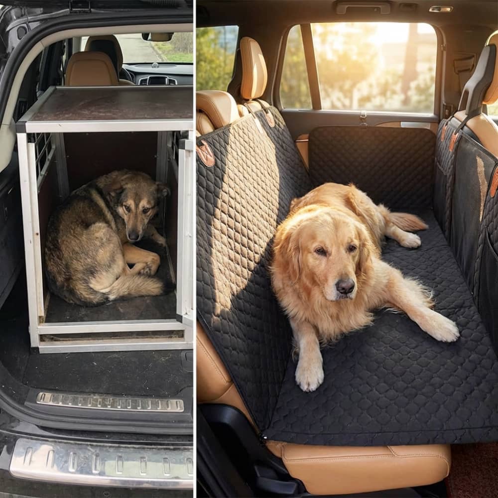 Im Gegensatz zu einer Box, die oft Gitterstäbe und wenig Platz hat, sorgt der Rücksitzschutz für eine stabile, rutschfeste Unterlage, auf der sich dein Hund frei bewegen und entspannt hinlegen kann.