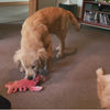 Größere Hunde können ebenfalls damit spielen, jedoch ist das Spielzeug nicht für extrem starkes Kauen ausgelegt.